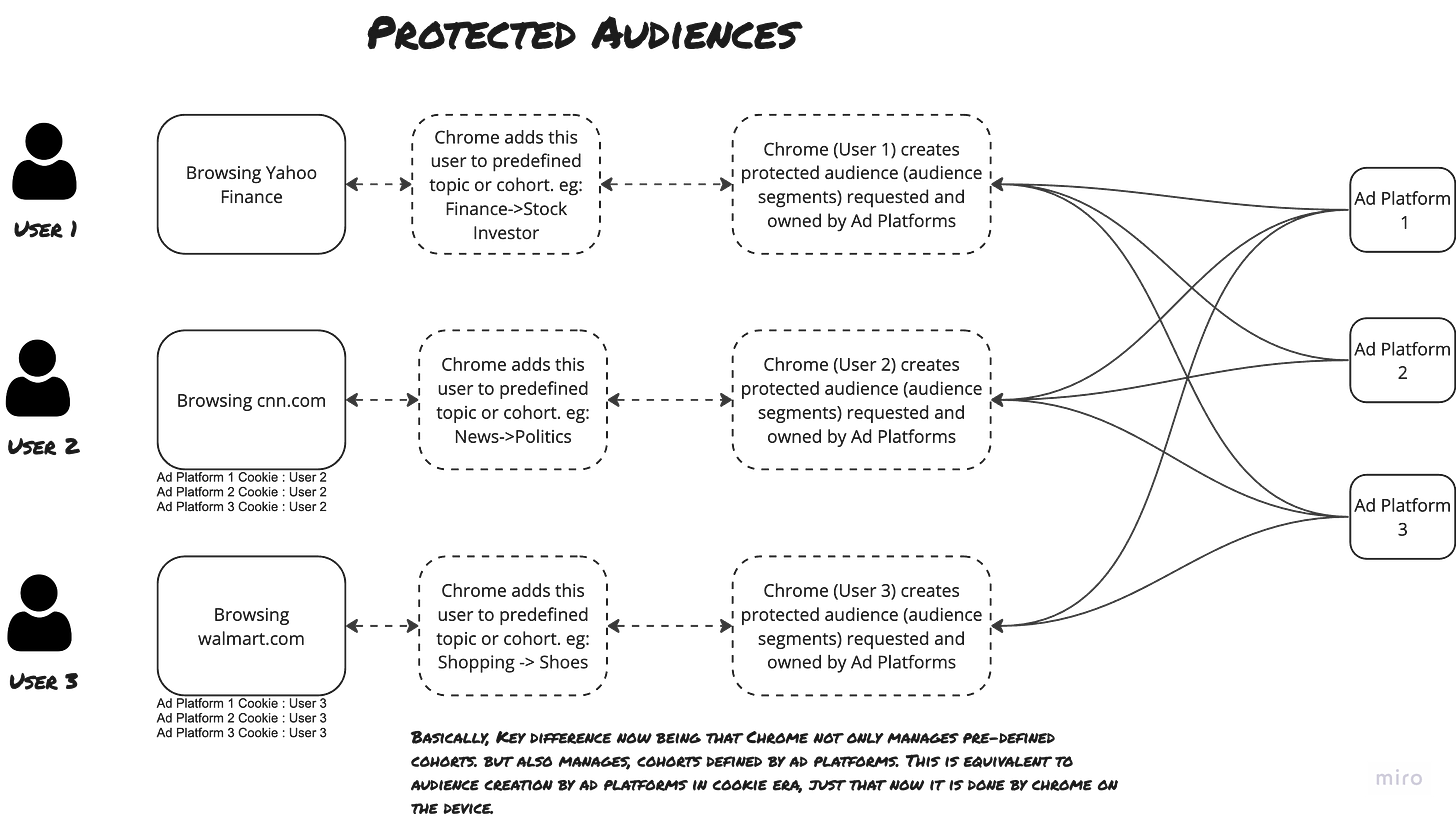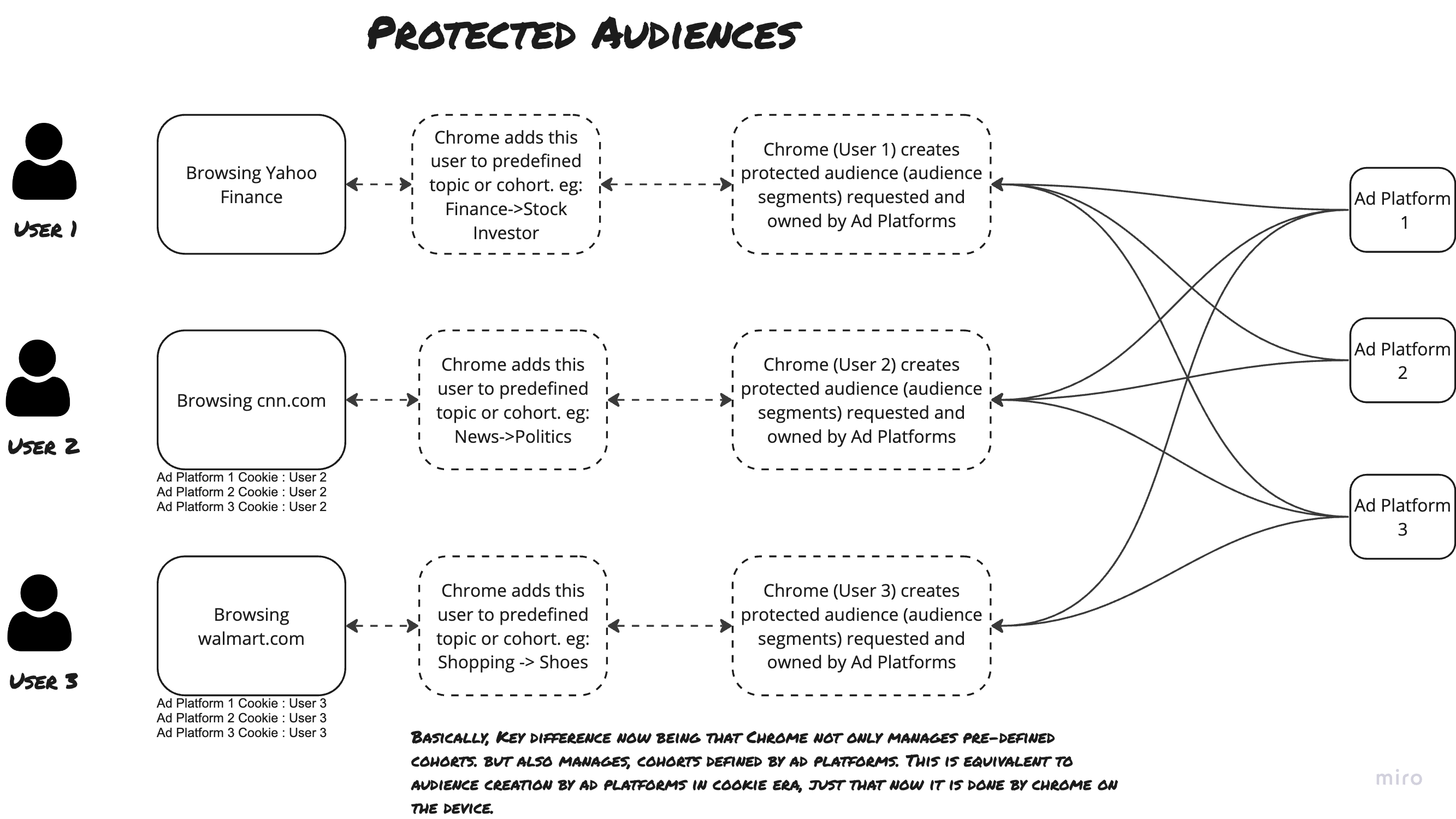Protected Audiences : again, These are cohorts just that they are now defined by publishers/retailers/ad platforms. The key difference is that these cohorts are still managed by Chrome. There is an ongoing discussion about it being server side ( truster server etc). but more on it later.