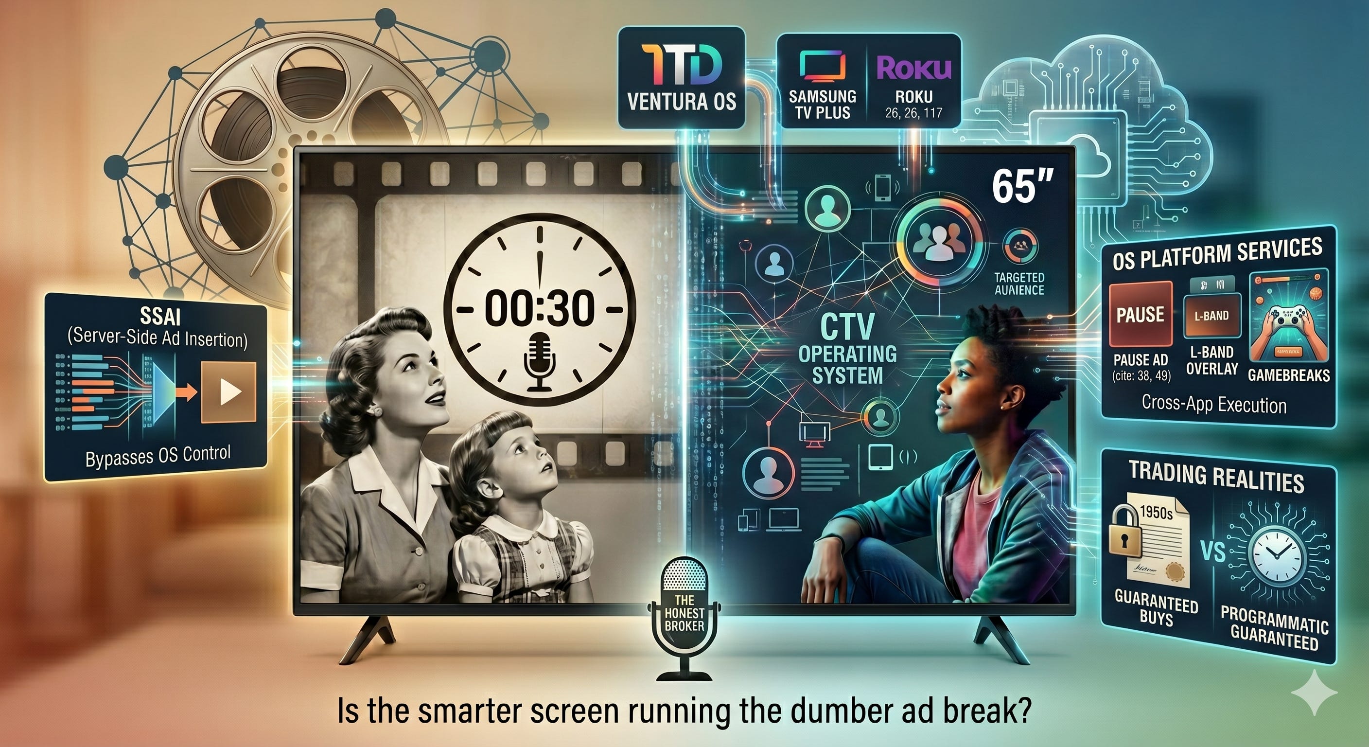 It has not, or rather it has arrived in the same way that a passenger train has arrived at a station that still uses 1950s ticketing infrastructure. The ride is smoother. The engine is quieter. The seat is more comfortable. The ticket still has to be bought at the window, in advance, at a fixed price, negotiated between human beings who then confirm the transaction over email. The programmatic revolution in television is real at the infrastructure level and largely theater at the commercial level. Understanding why requires understanding something that almost nobody in those hotel ballrooms will say out loud: that the operating system of the television set is now the most powerful piece of commercial infrastructure in modern advertising, that the companies who built it are using it to concentrate supply in ways that would give an economics professor pause, and that one of the most credible attempts to challenge that concentration is being made by The Trade Desk, which saw the problem clearly, built Ventura as a direct response, and now faces the question of whether its current architecture is sufficient to actually shift the balance of power.